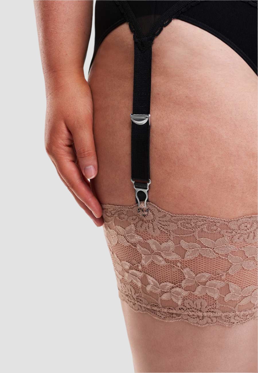 Browse our range of wide lace holdups and wide stockings for the woman blessed with curves. You'll feel irresistible in our luxurious Italian products that stay in place and fit beautifully. Sizes up to UK40 to fit shapely thighs up to 38", including bridal stockings.