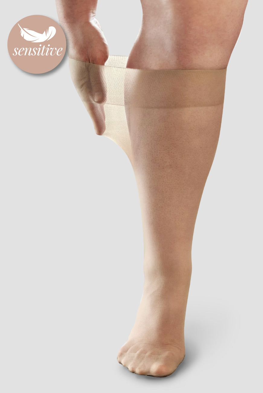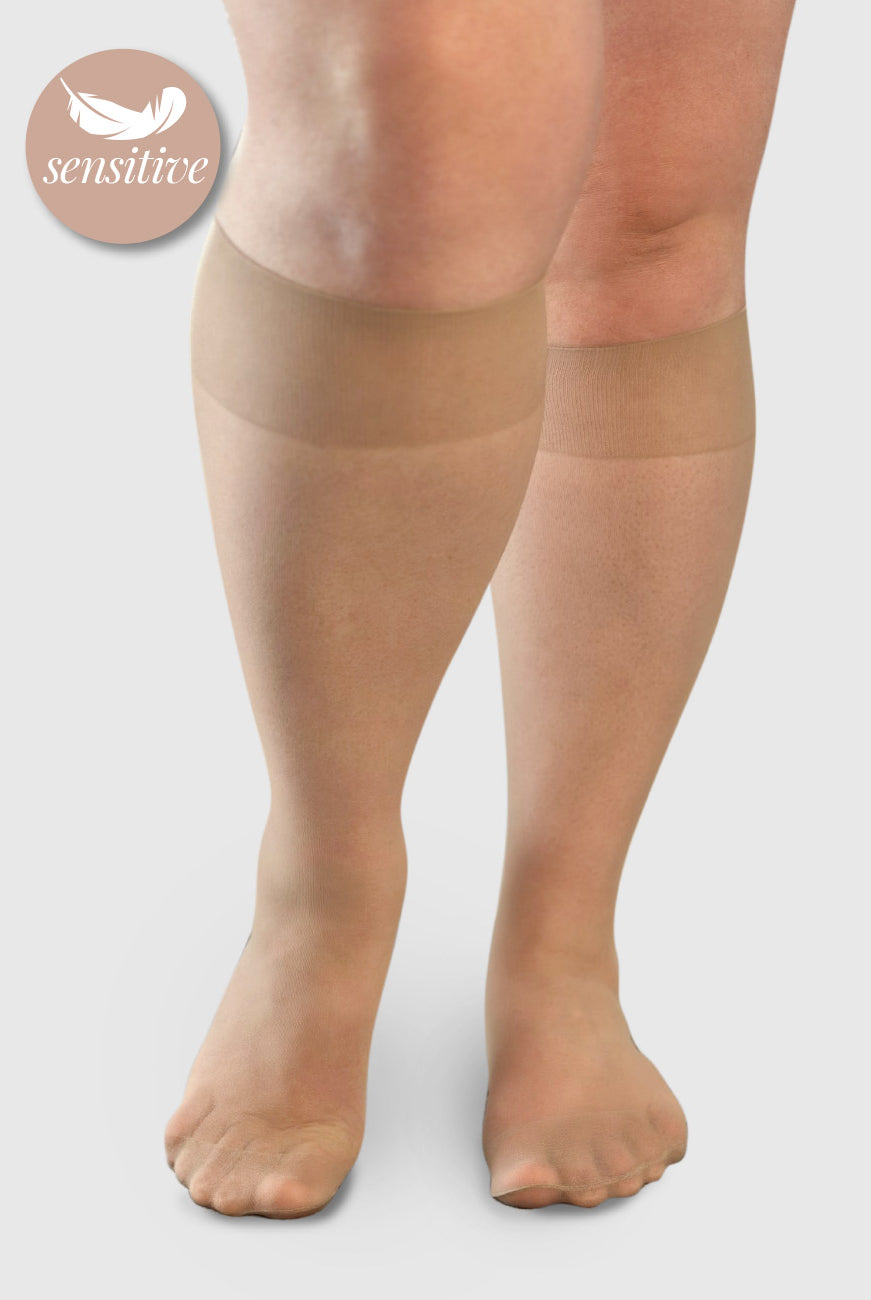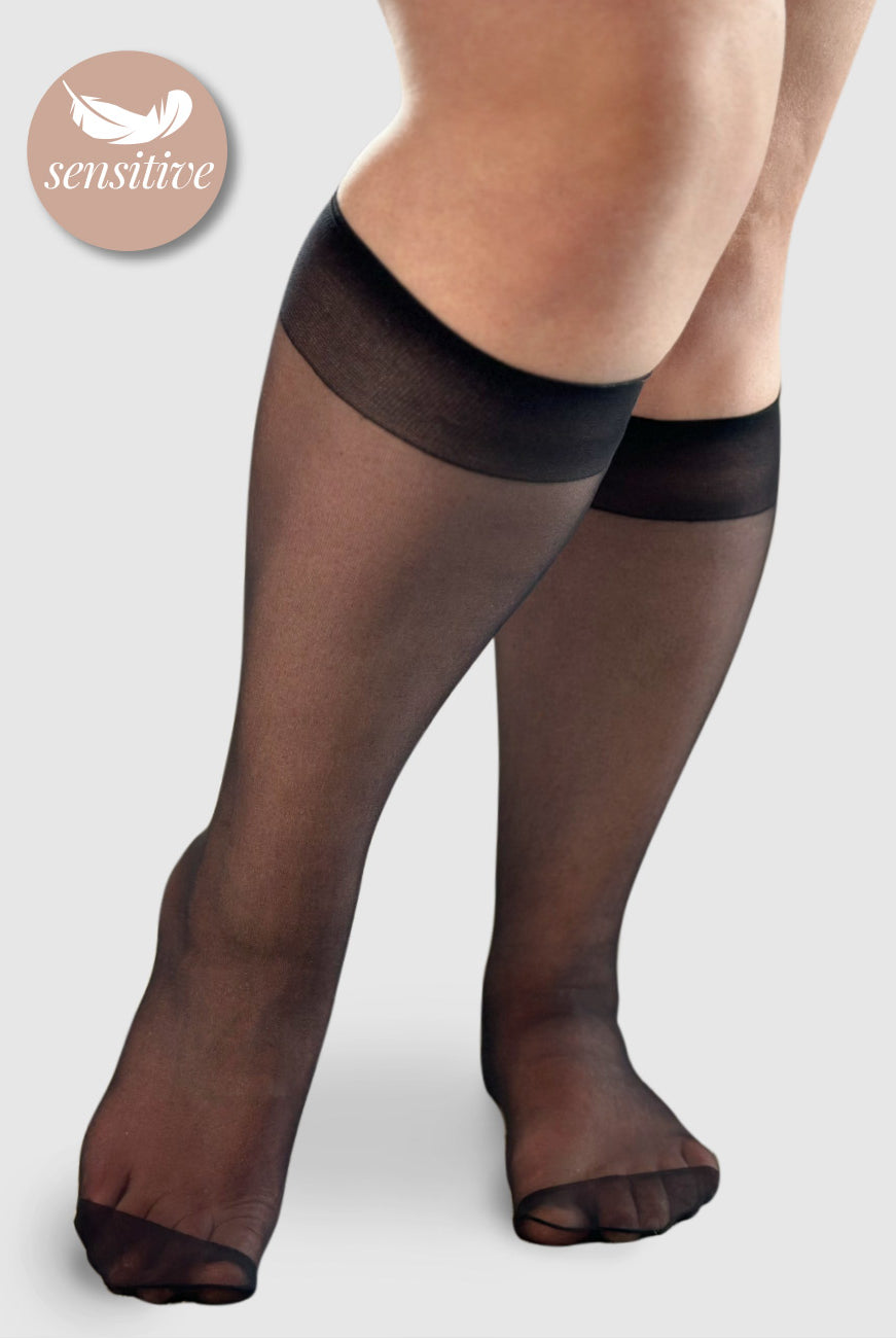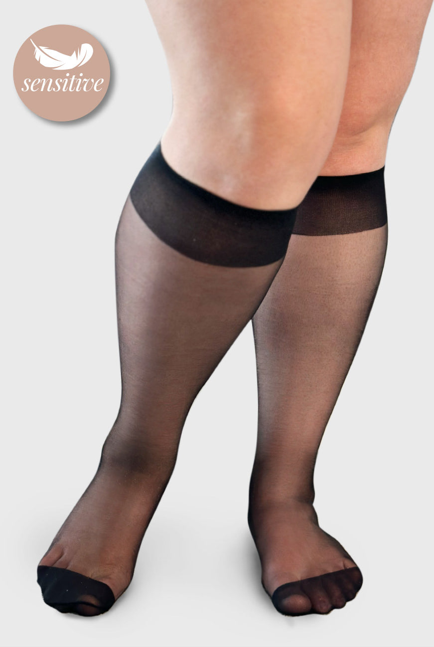 Our plus size, super soft, knee highs and socks are designed for all-day comfort for the wider calf up to 37 inches. Choose between a range of thicknesses and lengths for large legs, all with a wide, soft band that will not dig in or leave a mark.