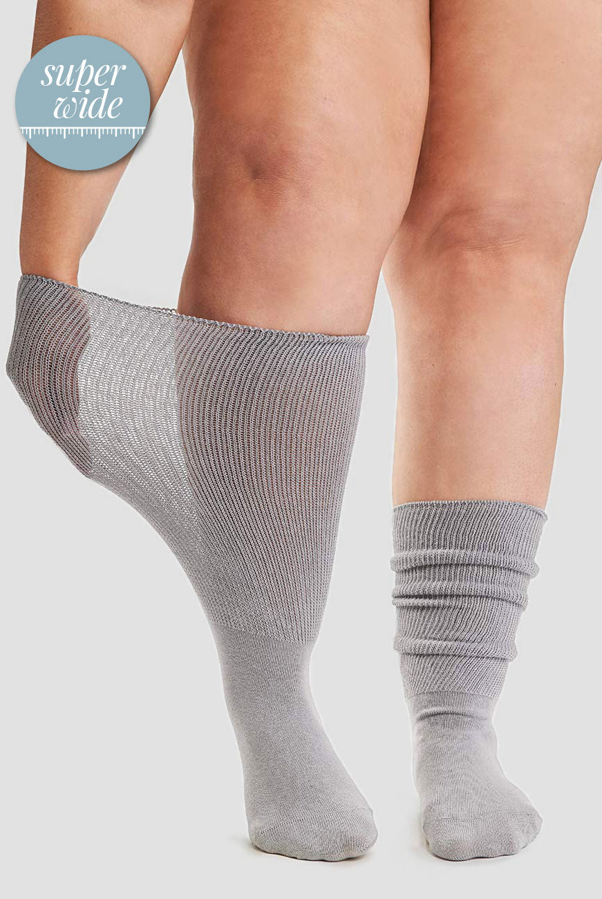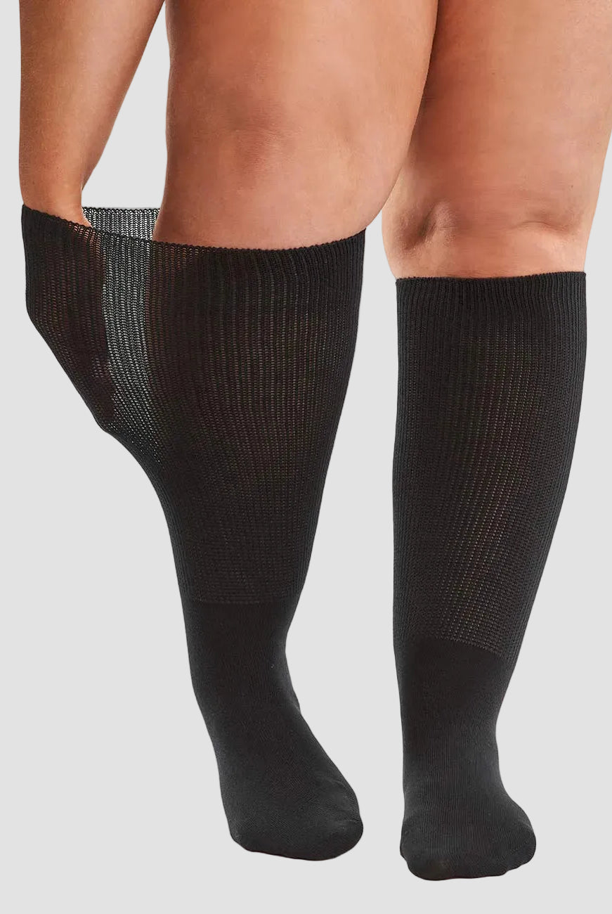 Our plus size, super soft, knee highs and socks are designed for all-day comfort for the wider calf up to 37 inches. Choose between a range of thicknesses and lengths for large legs, all with a wide, soft band that will not dig in or leave a mark.