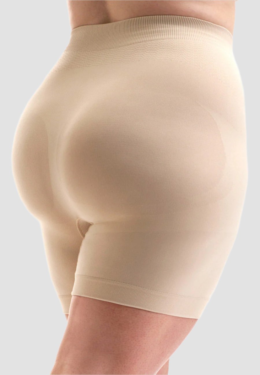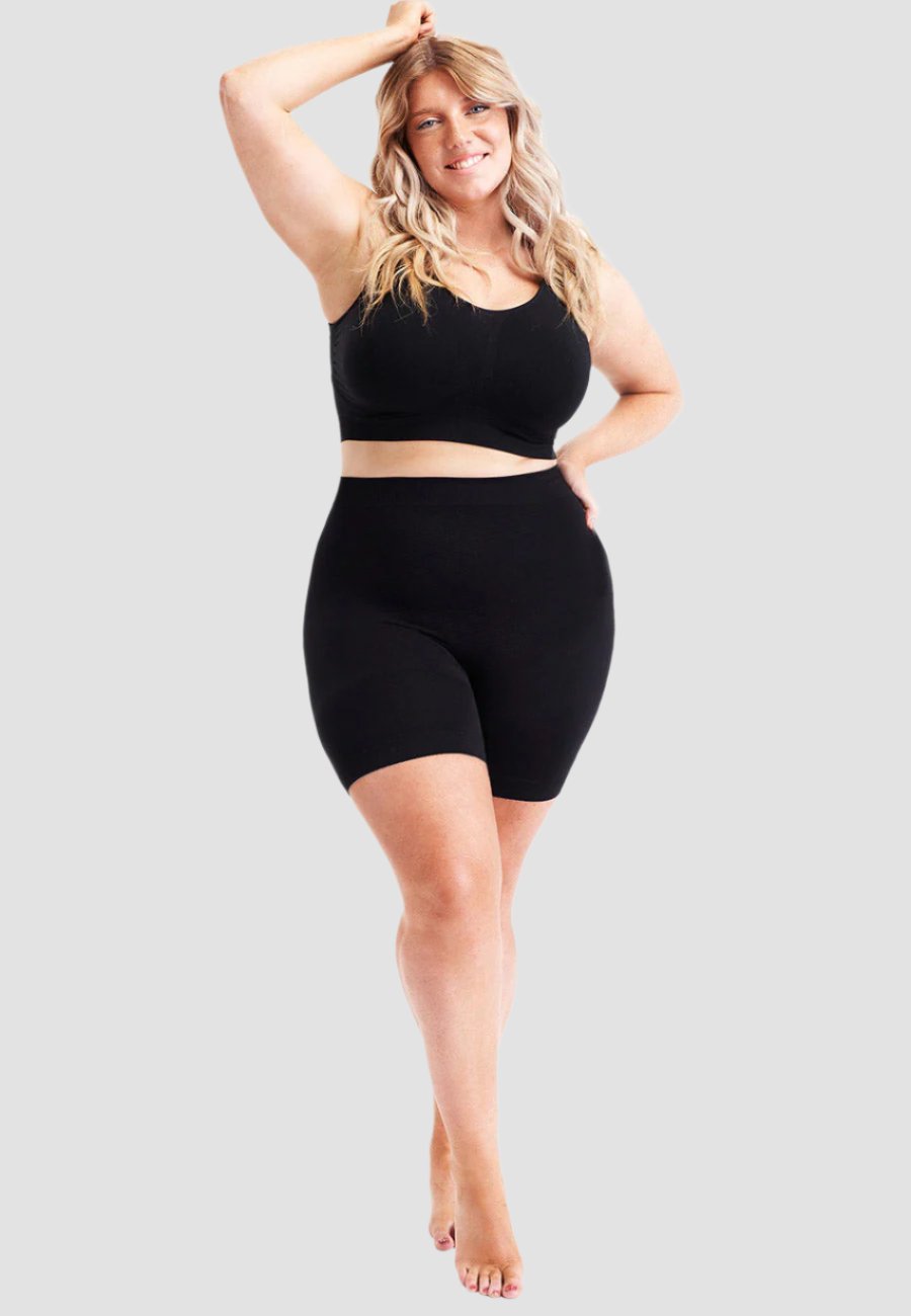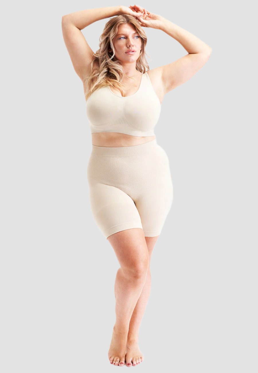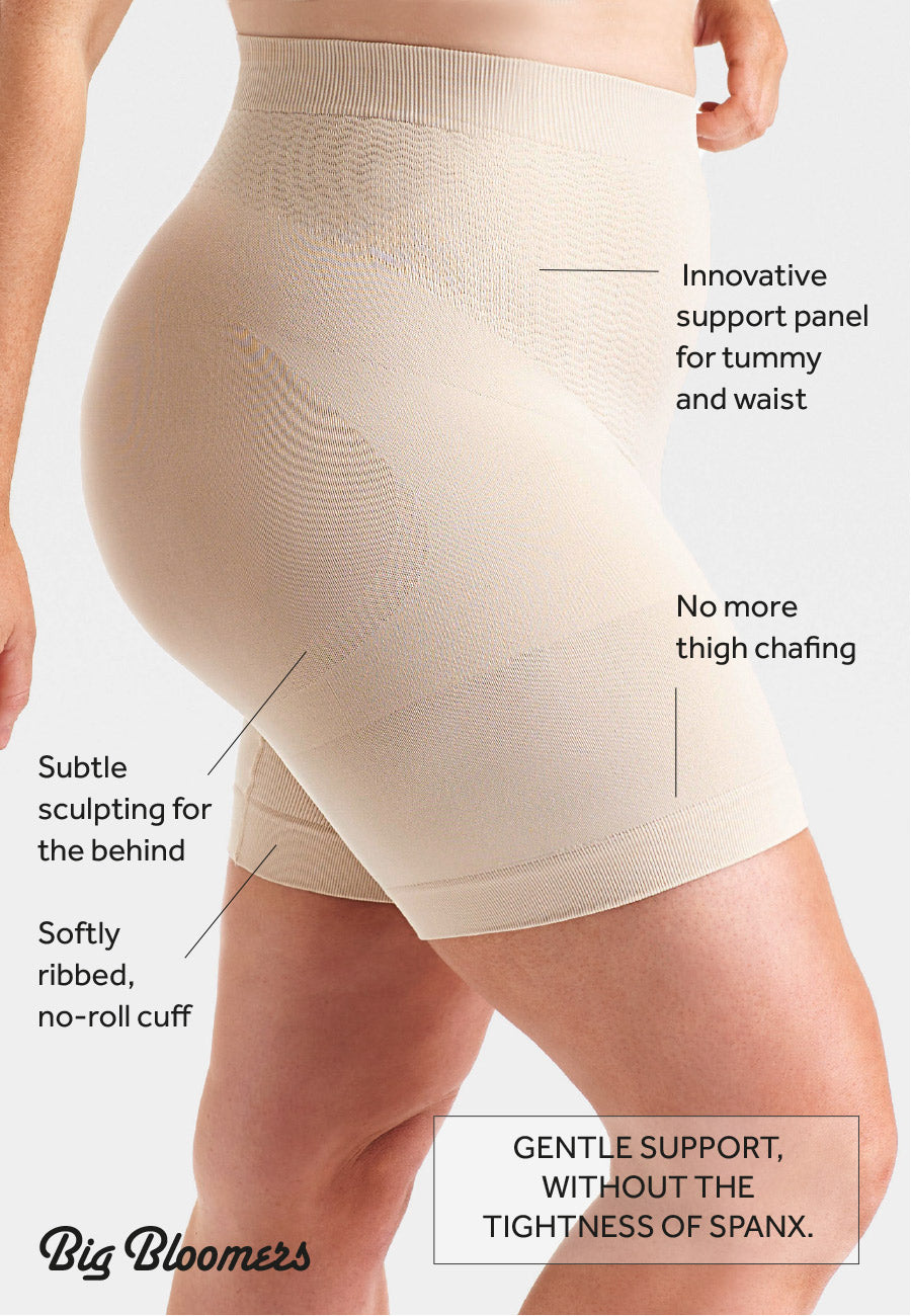 These are not shapewear like spanx, and will not be restrictive. The support is light, meaning you feel held in and smoothed (no VPL here), but can wear them all day without any discomfort. They are less lightweight around the body than our usual shorts, but are still as cool and easy to wear, and are soft and stretchy on the thigh. These have our usual ribbed hem to prevent them riding up, and a great bit of shaping around the bottom.