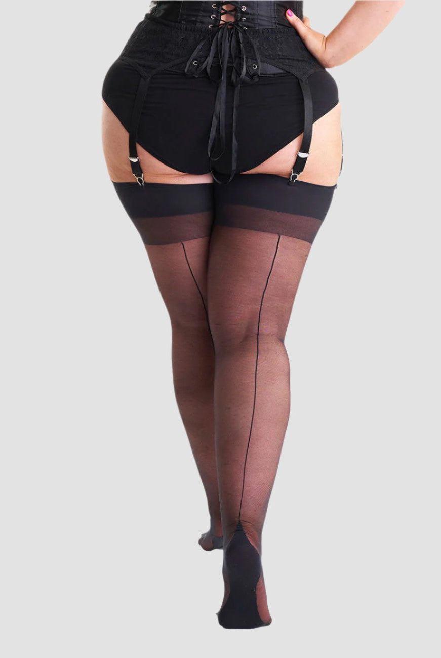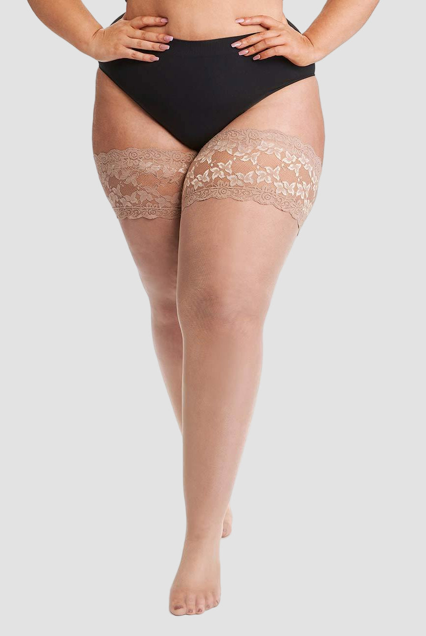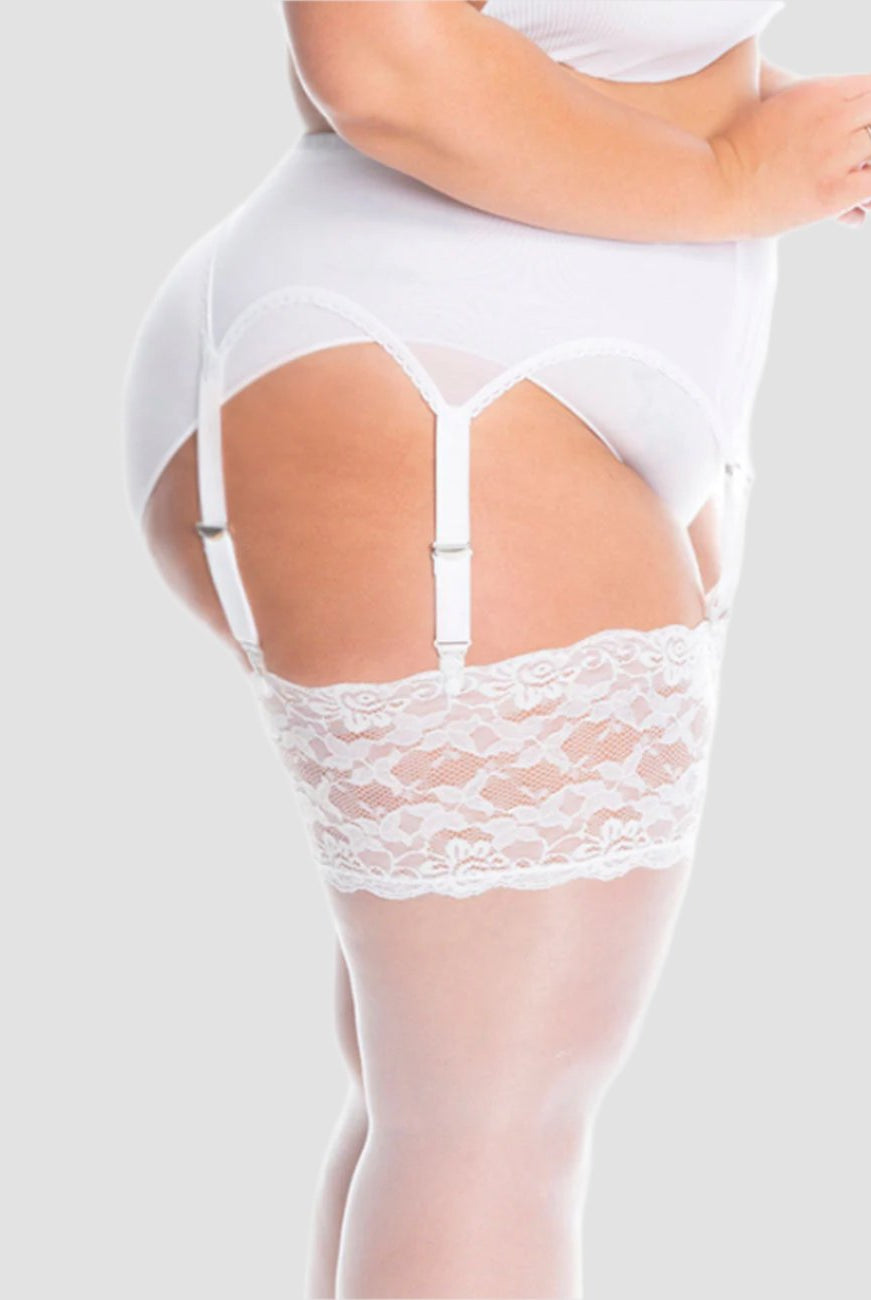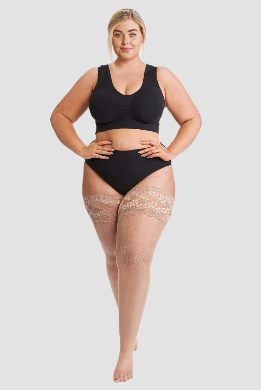 Browse our range of wide lace holdups and wide stockings for the woman blessed with curves. You'll feel irresistible in our luxurious Italian products that stay in place and fit beautifully. Sizes up to UK40 to fit shapely thighs up to 38", including bridal stockings.