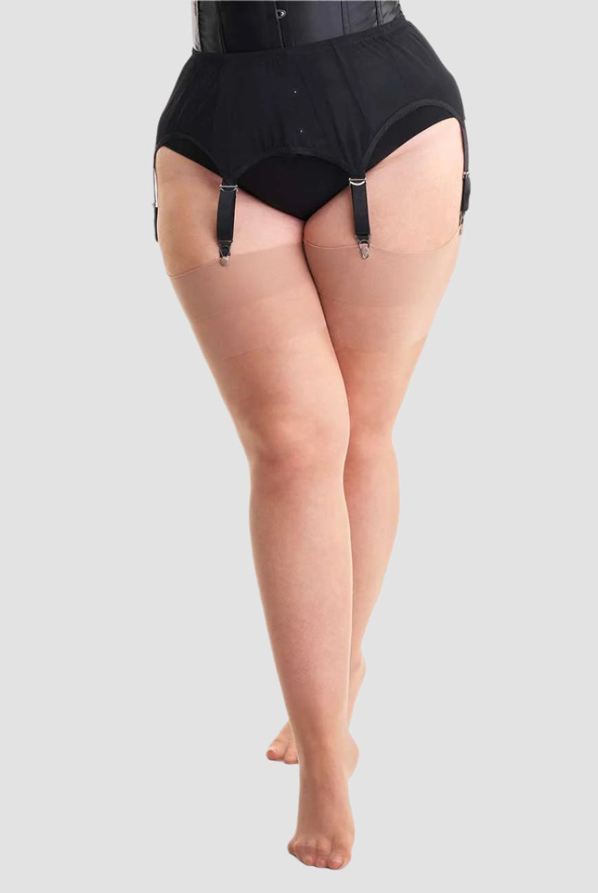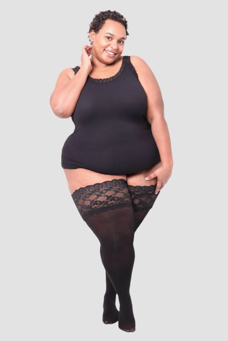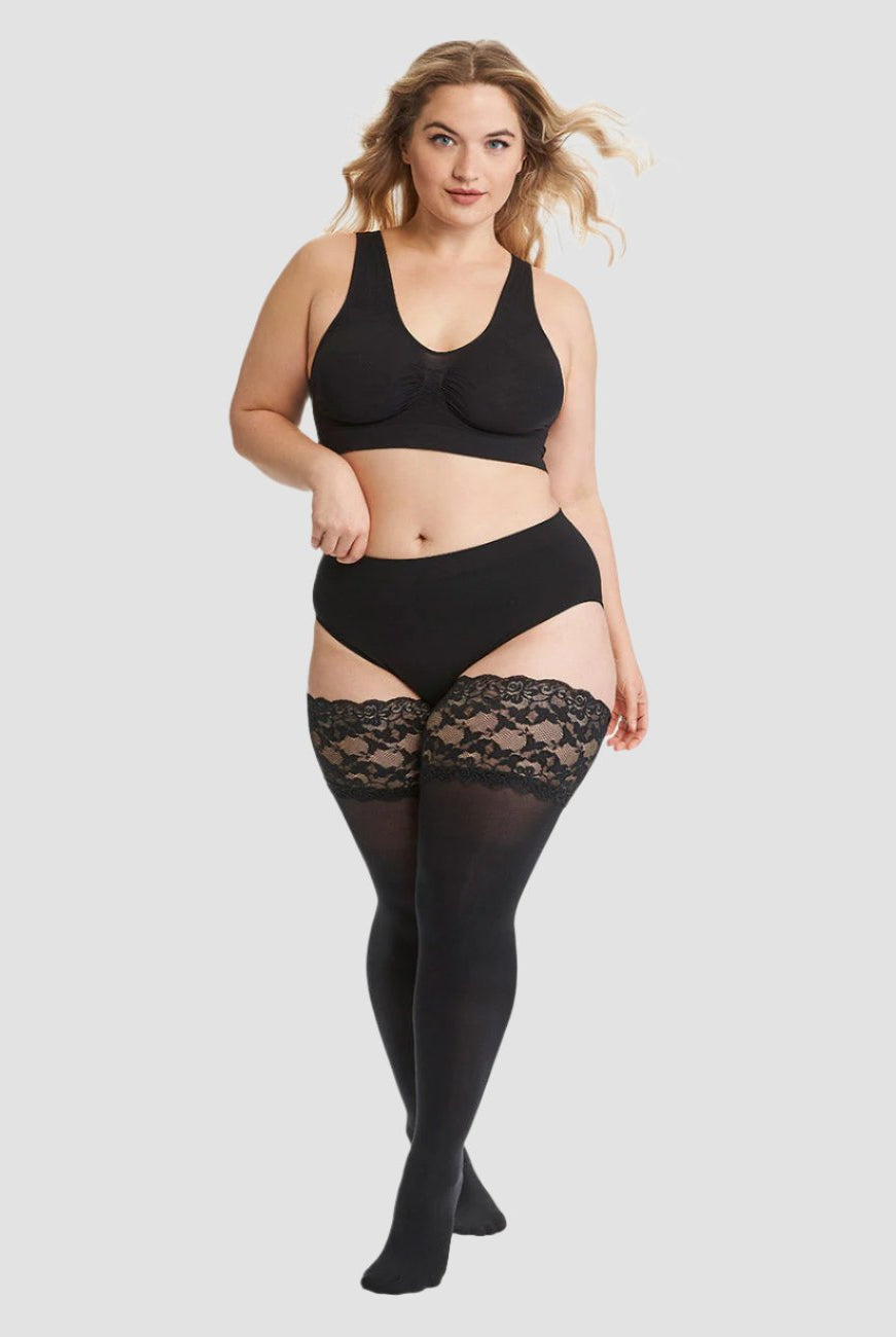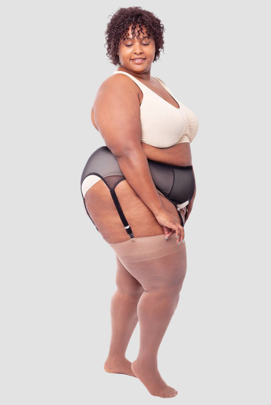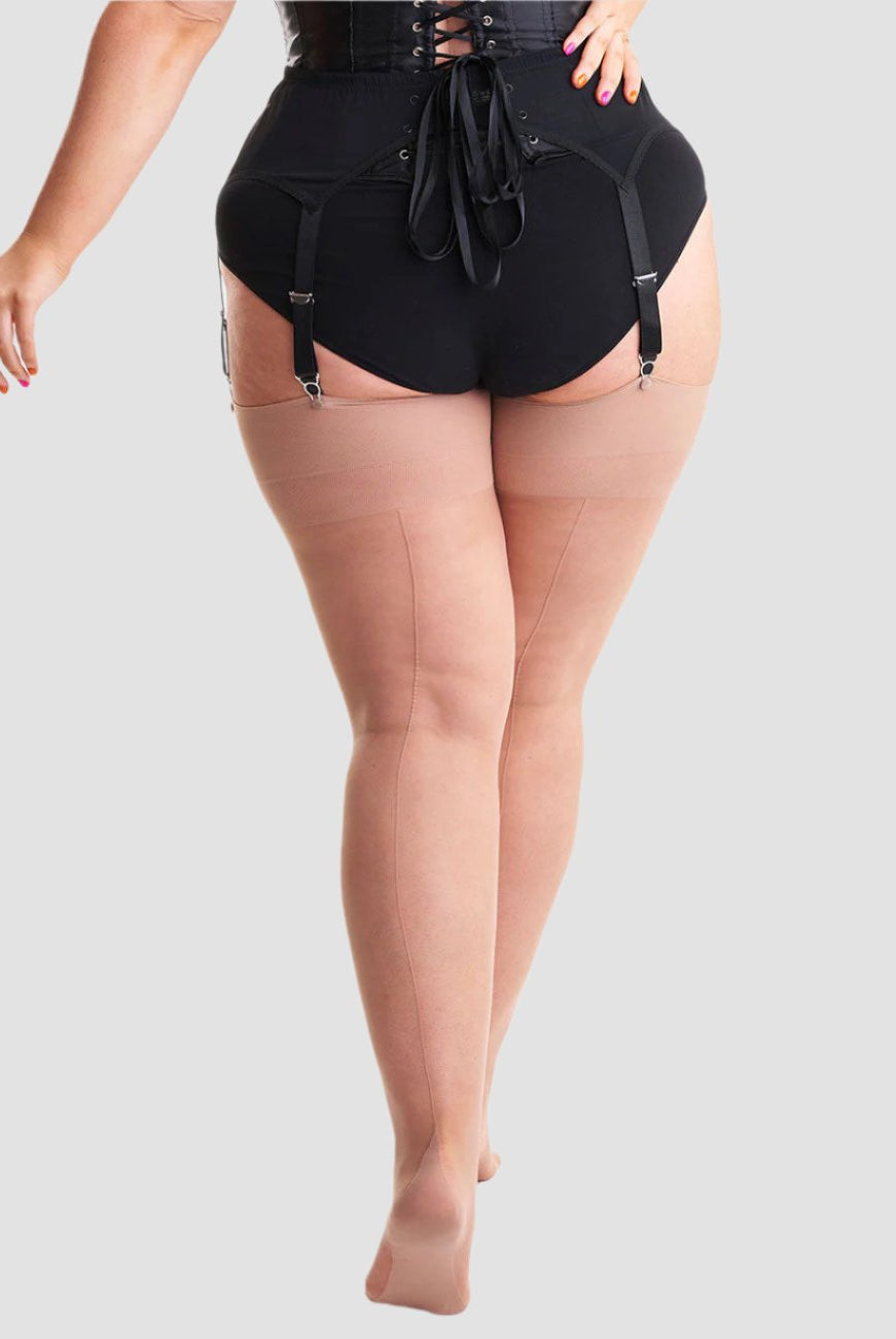 Browse our range of wide lace holdups and wide stockings for the woman blessed with curves. You'll feel irresistible in our luxurious Italian products that stay in place and fit beautifully. Sizes up to UK40 to fit shapely thighs up to 38", including bridal stockings.