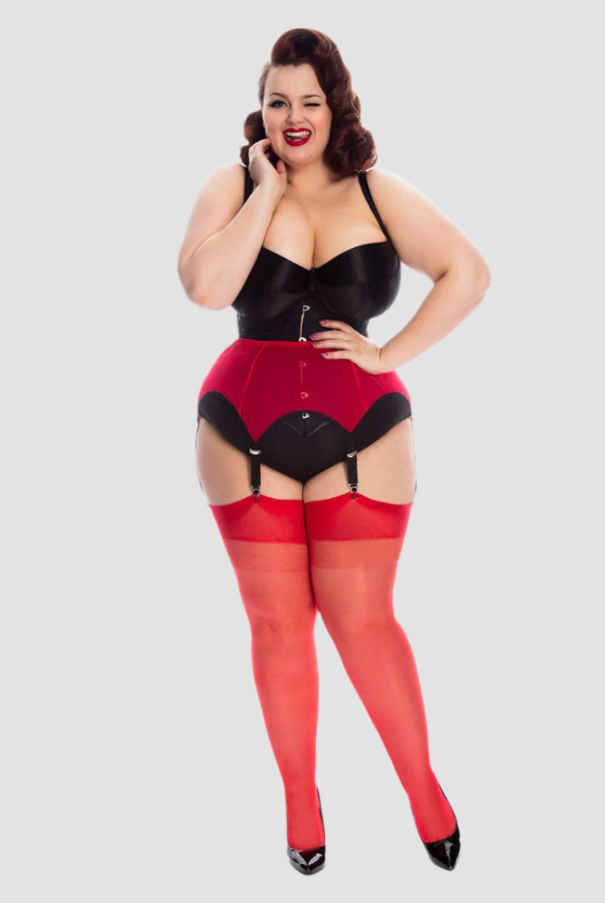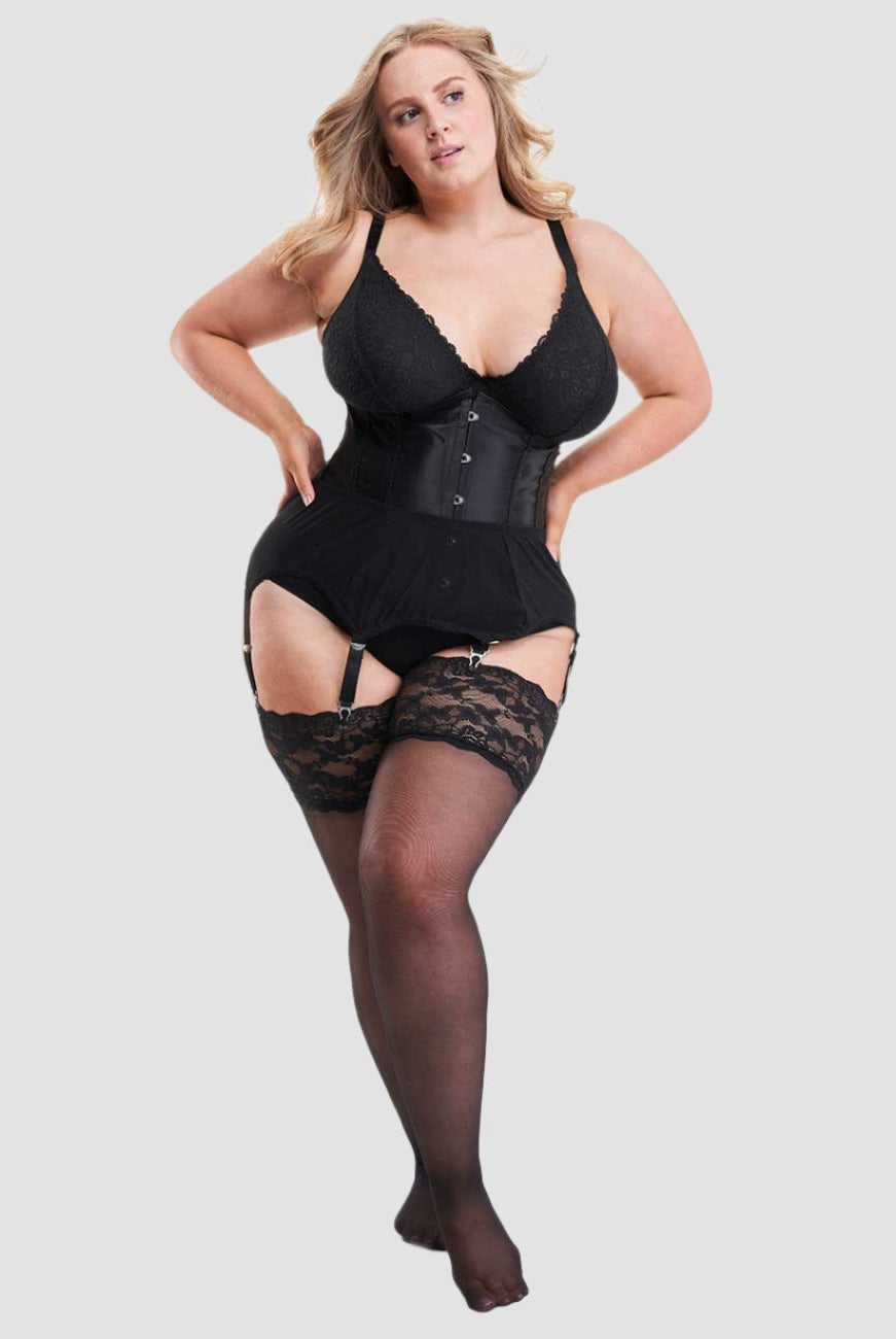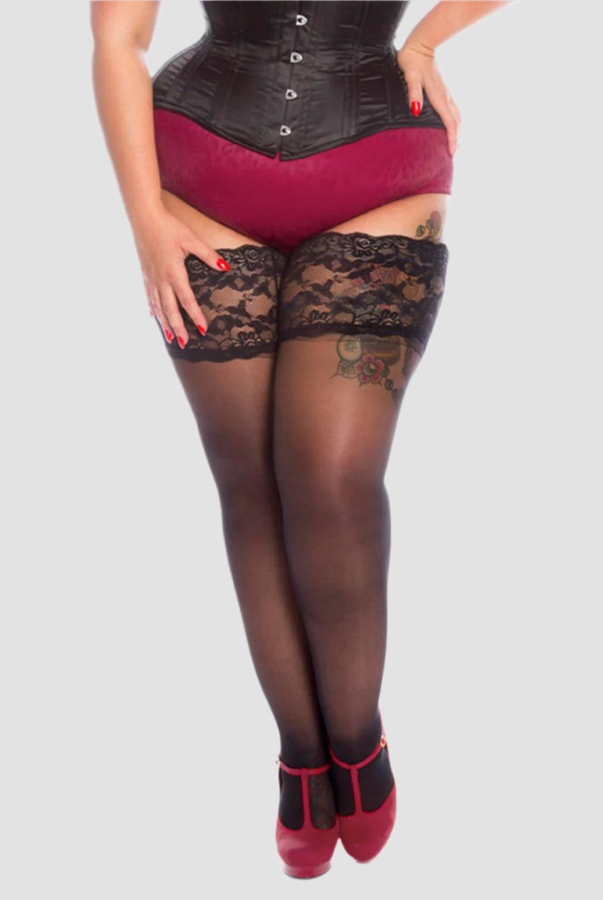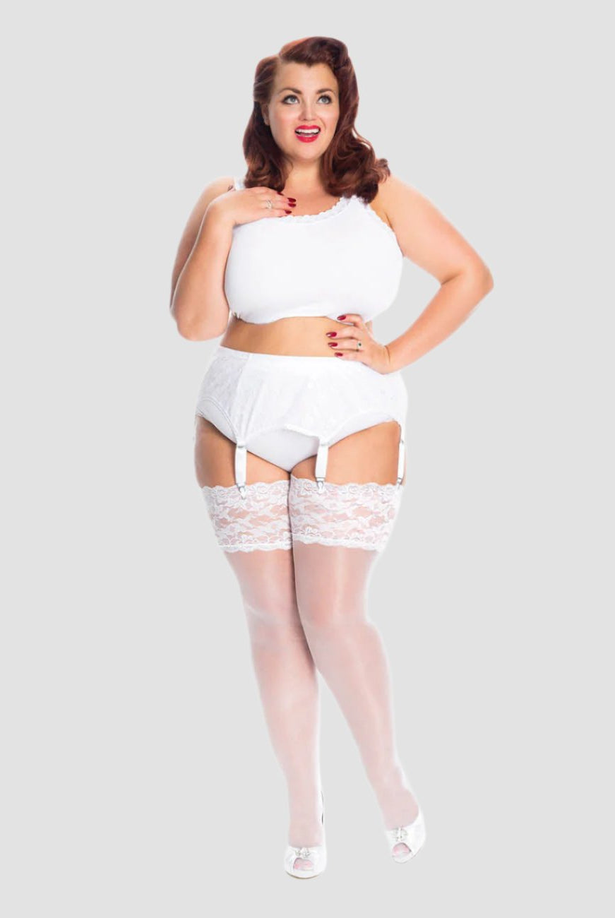 Browse our range of wide lace holdups and wide stockings for the woman blessed with curves. You'll feel irresistible in our luxurious Italian products that stay in place and fit beautifully. Sizes up to UK40 to fit shapely thighs up to 38", including bridal stockings.